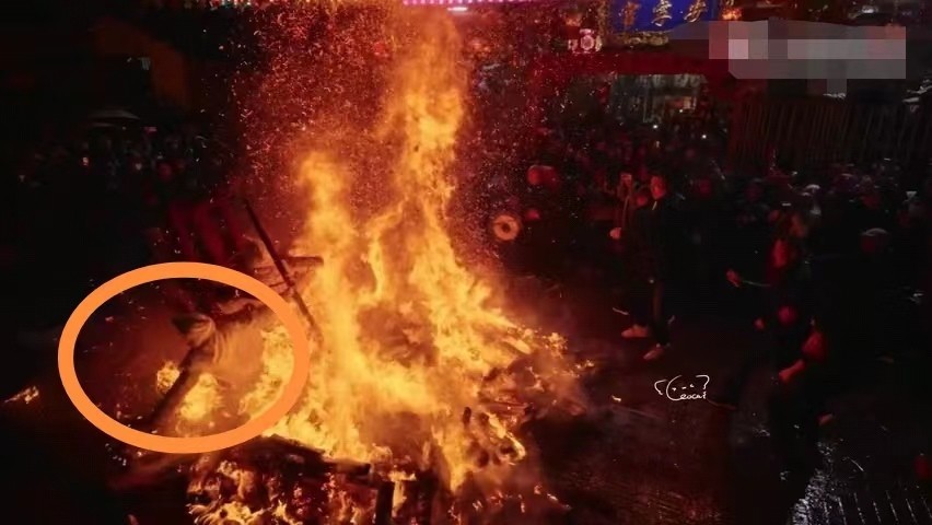 近日,一段福建省莆田市的民俗表演让网友们发出惊呼。视频中四位身穿保护服装的村民,抬着一个轿子冲进了熊熊燃烧的火堆,可能因为冲得太快,排在最后的村民摔倒了,附近的人连忙上前帮忙。据视频拍摄者介绍,这段视频拍摄于莆田市涵江区梧塘镇九峰村。