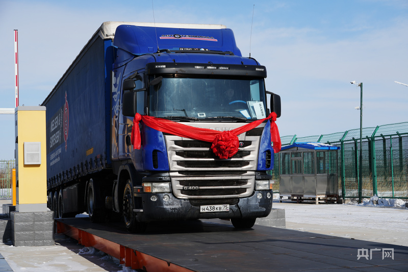 俄籍货车入境(央广网发王化勇摄)