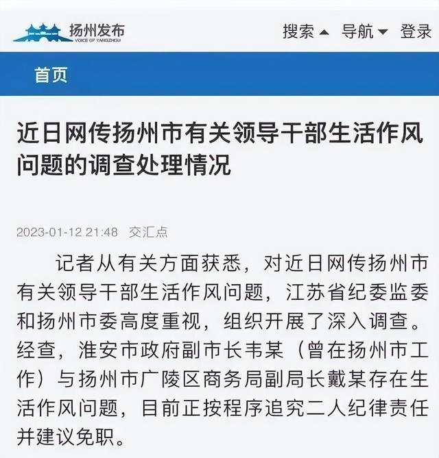 今年1月,扬州两名干部存在生活作风问题一事在网上闹得沸沸扬扬。