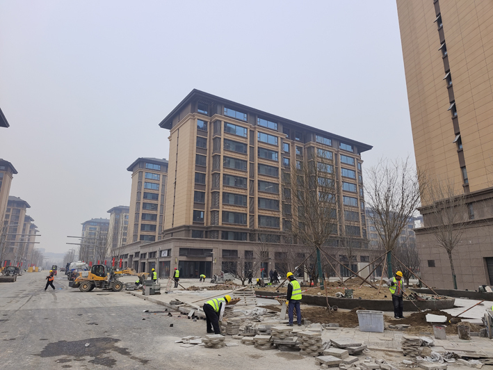 从华望城建设现场看,目前建筑主体和外立面已经大致完成,很多施工人员都在做道路铺设、小区绿化等工作。