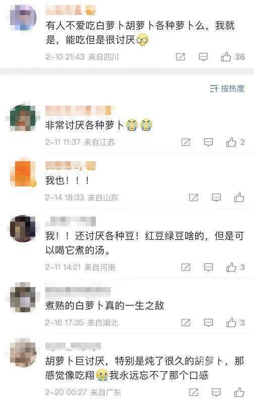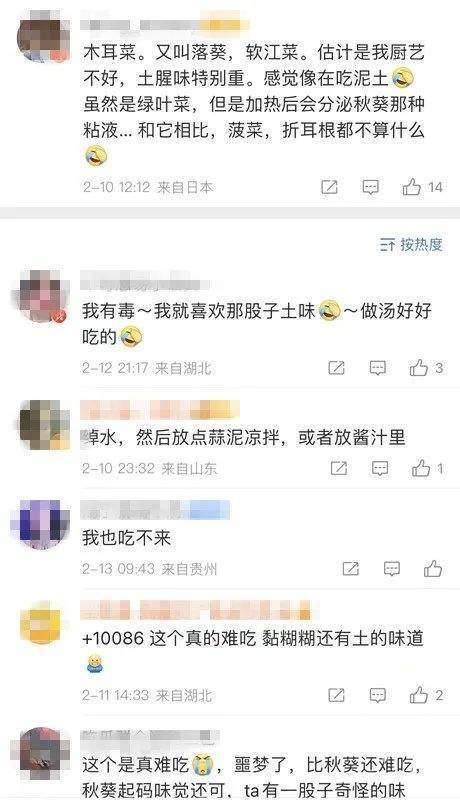 再往下面翻,你会发现,人与人的差别真的好大,你觉得好吃的蔬菜,在另一个人那里可能是噩梦,比如木耳菜,有人就喜欢它特殊的“土味”,有人则觉得像在吃泥土,虽然是绿叶菜,加热后会分泌秋葵那种粘液(秋葵躺枪)……