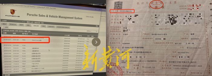 4S店对李女士认为车辆开过两次发票的问题也做出回应:2020年4月1日是开具给李女士的零售发票日期,是就该车辆第一次开具零售发票。李女士在系统内看见2019年12月27日的发票记录,是德国厂家向保时捷中国(保时捷品牌中国总经销商)批售时开具的发票,发票开具主体是PAG(即保时捷德国),此发票涉及当时同批次到港车辆的付款,并非零售发票。