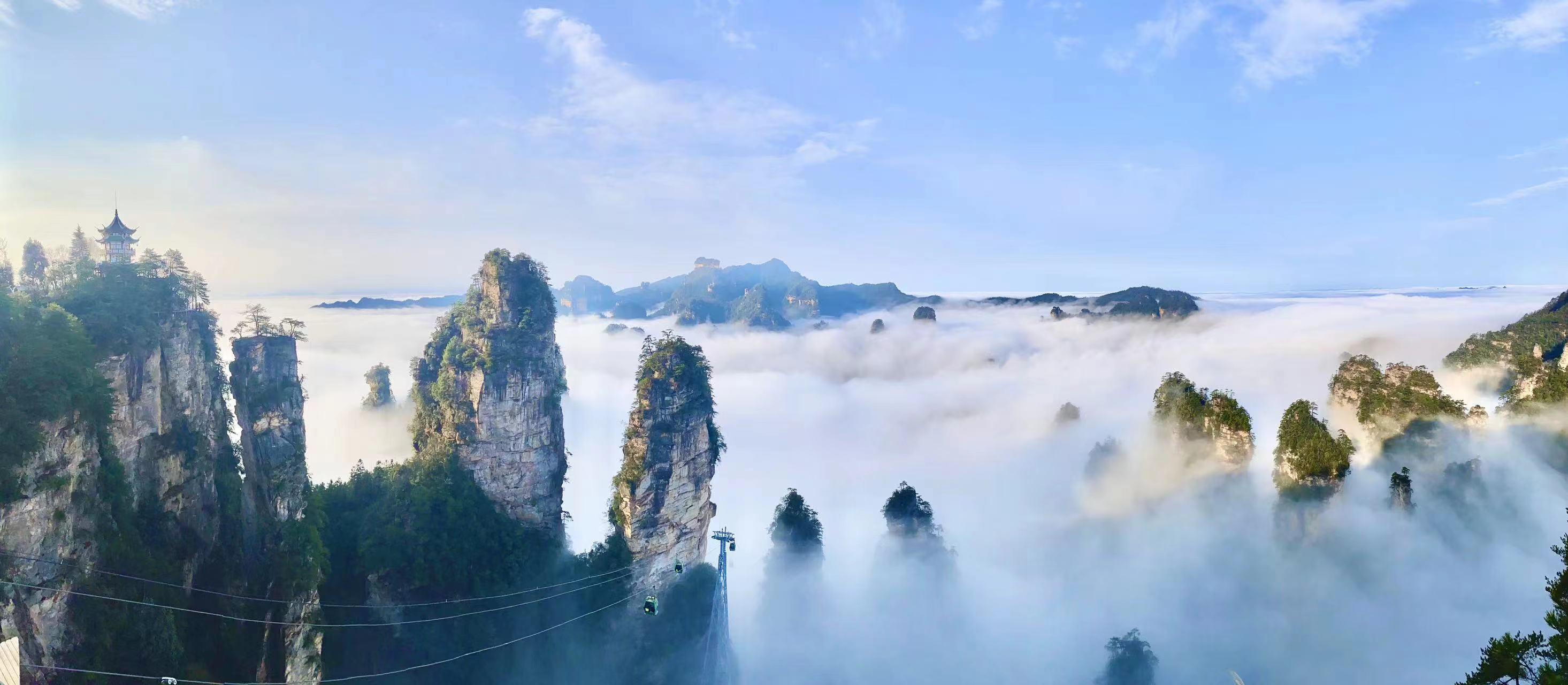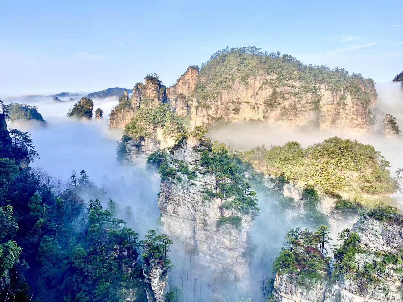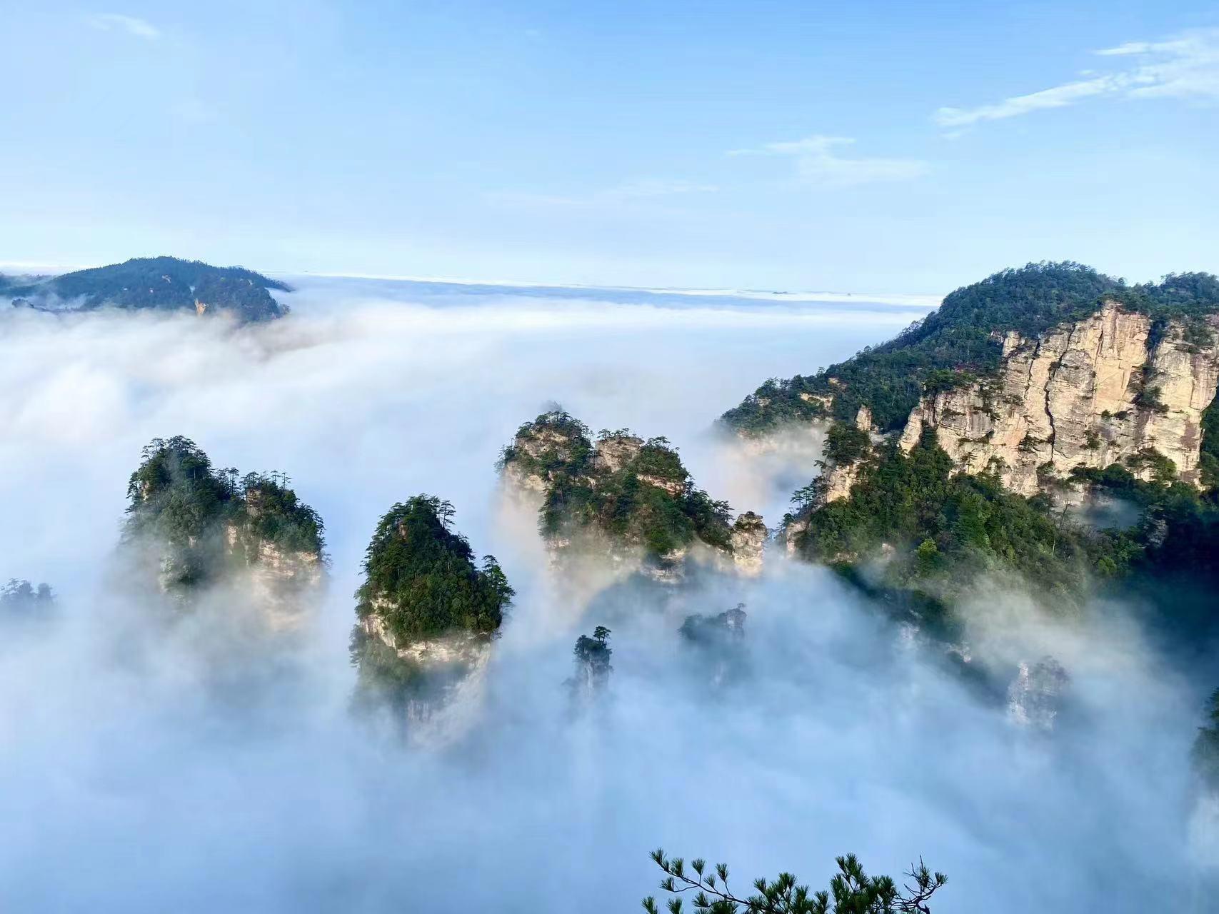 2月24日,雨过天晴的张家界国家森林公园黄石寨景区迎来大片云海盛景,整个景区宛如蓬莱仙境,如诗如画。