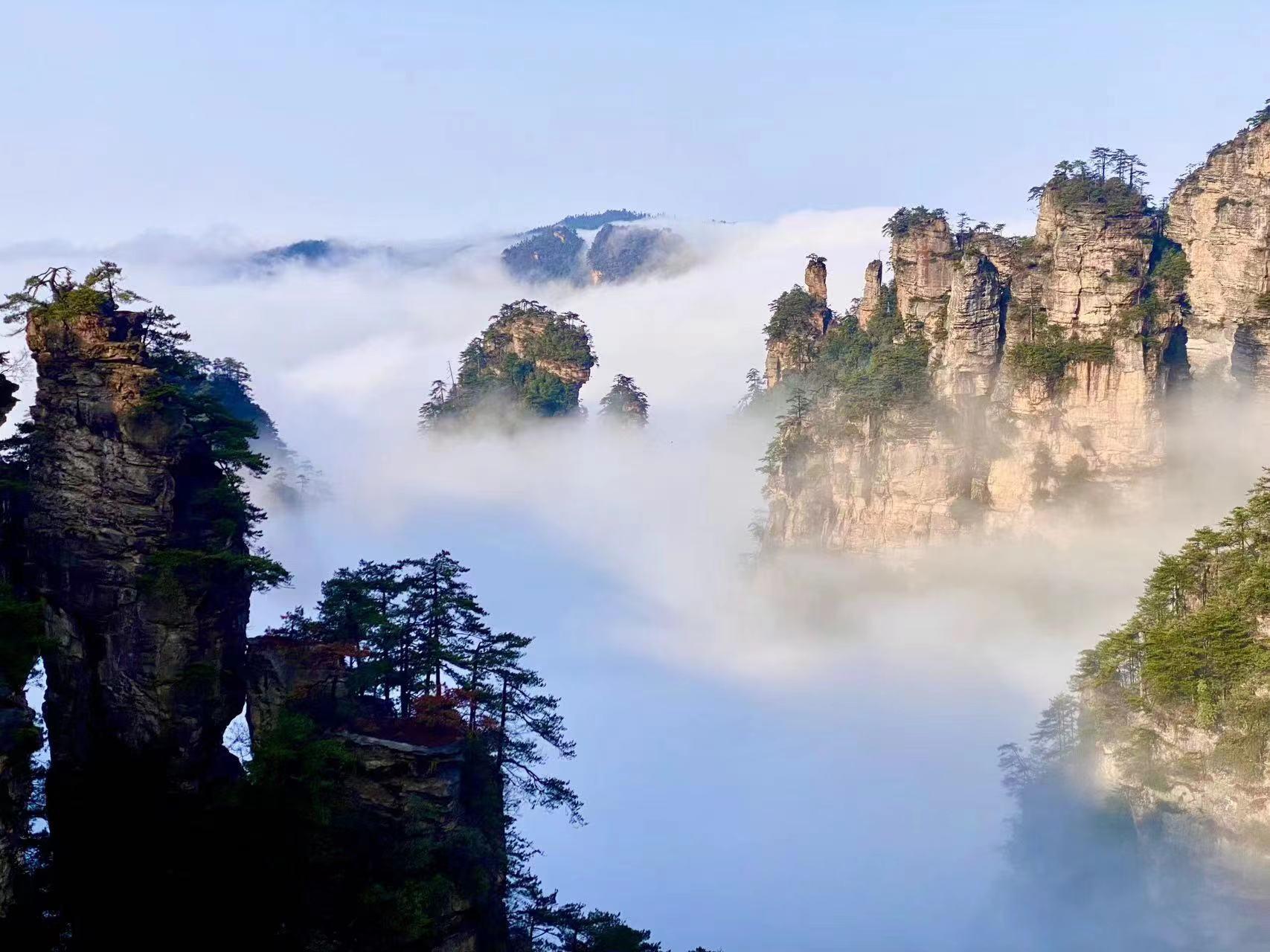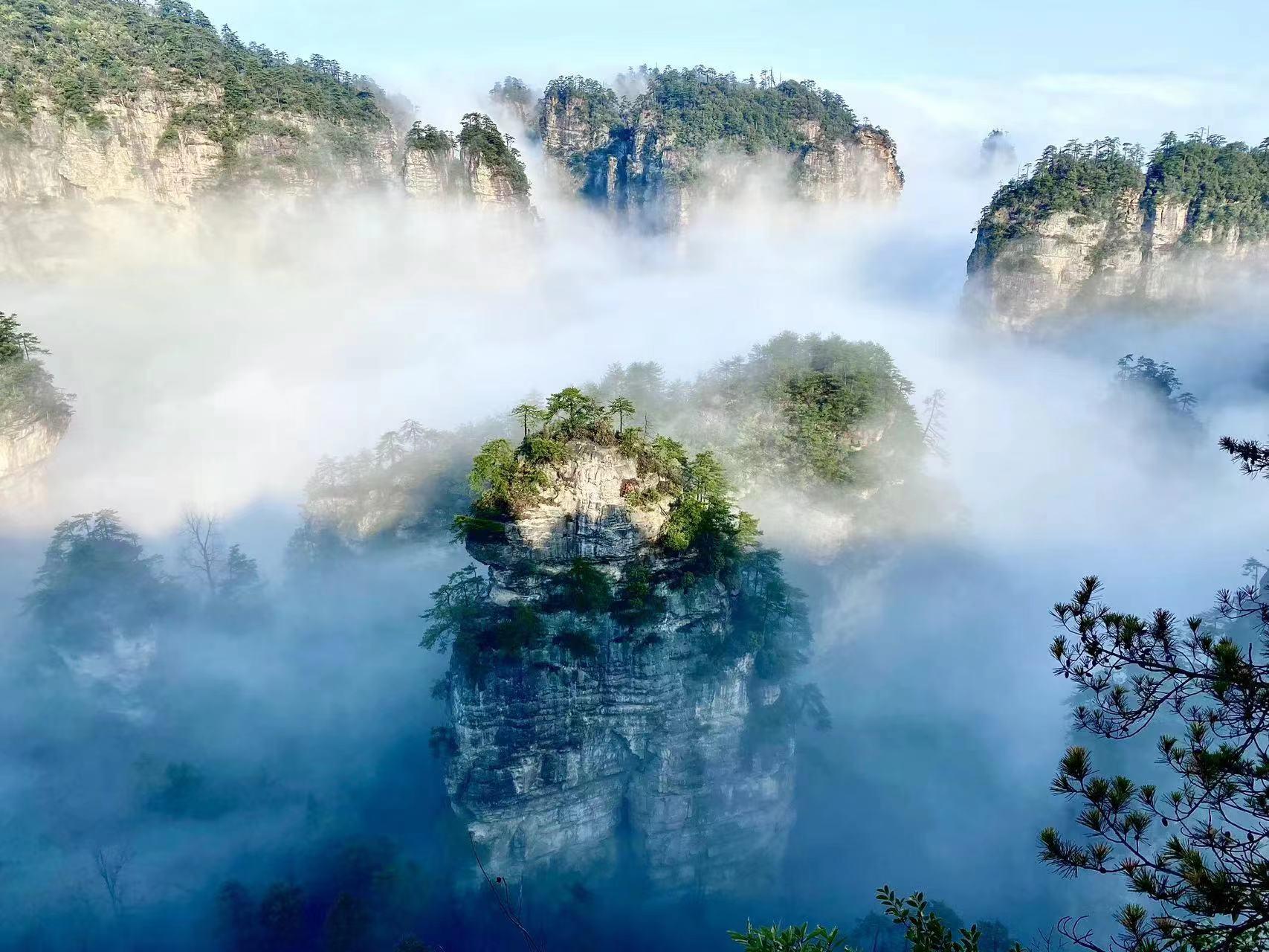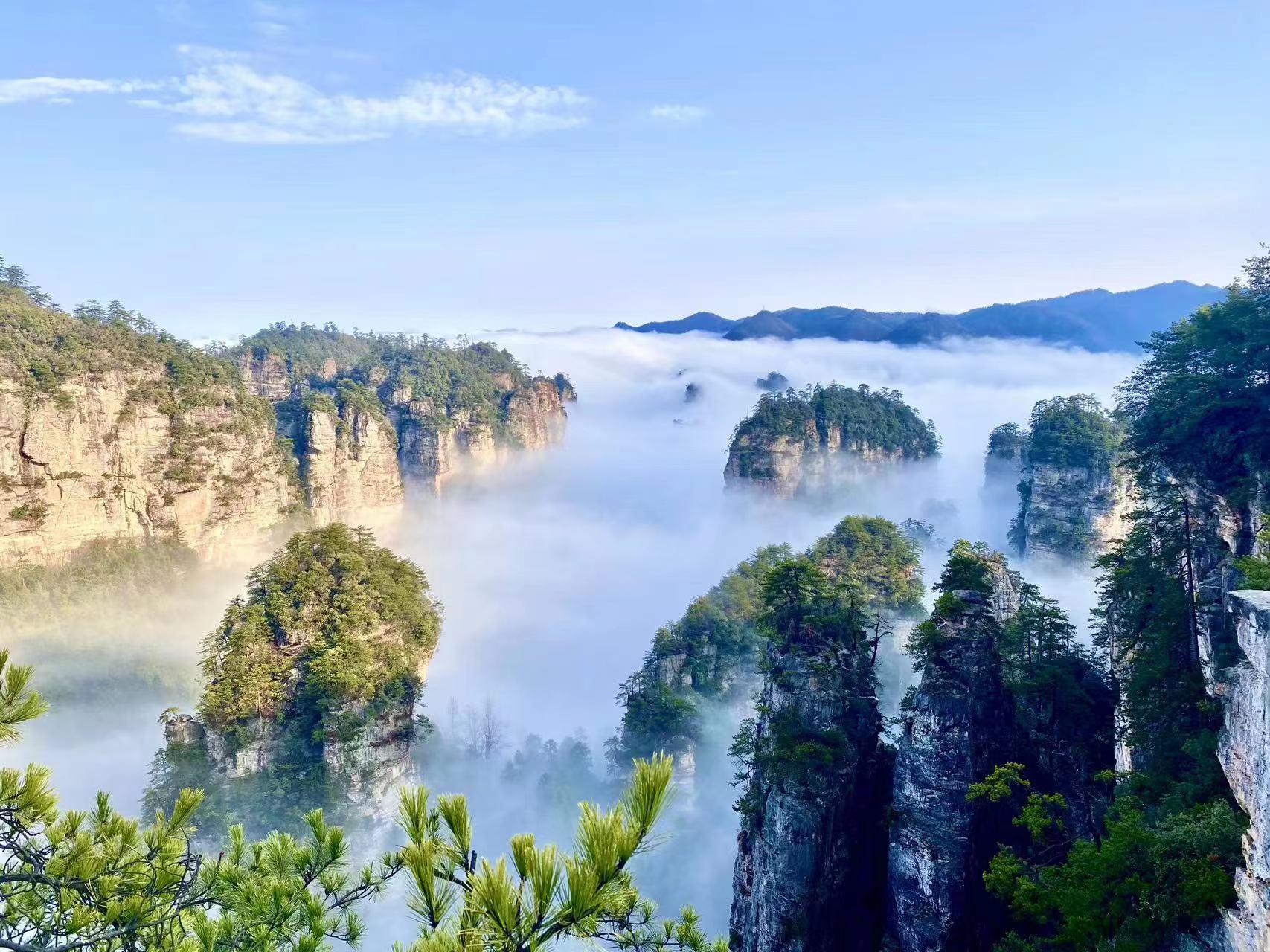 2月24日,雨过天晴的张家界国家森林公园黄石寨景区迎来大片云海盛景,整个景区宛如蓬莱仙境,如诗如画。
