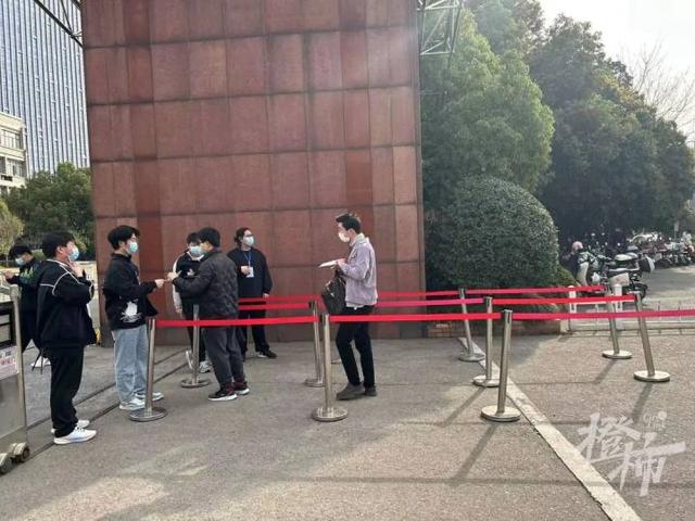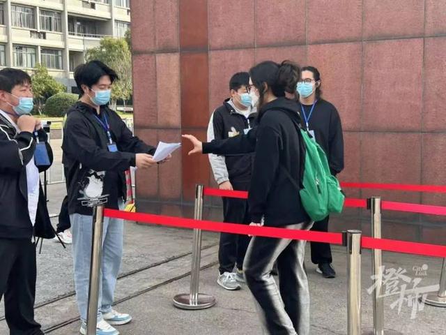 考生陆续进校。一眼看过去,不少人是面孔年轻的大学生模样。