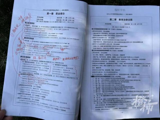 “我送小女儿来考试的,去年已经考过两门,这次再考剩余的。”大伯说,女儿今年30岁,大学毕业六七年,现在一家美国公司工作。“在外企工作,加上前两年疫情,压力很大的,经常加班。所以想考个教师资格证,看看能不能换一份工作。今年过年后,她就认真准备起来,每天看书到很晚的。”