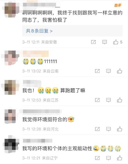 讨论题目的网友们,纷纷晒出自己文章的立意,还有网友说:“这篇作文自己练过,太幸运了。感觉这次能上岸。”