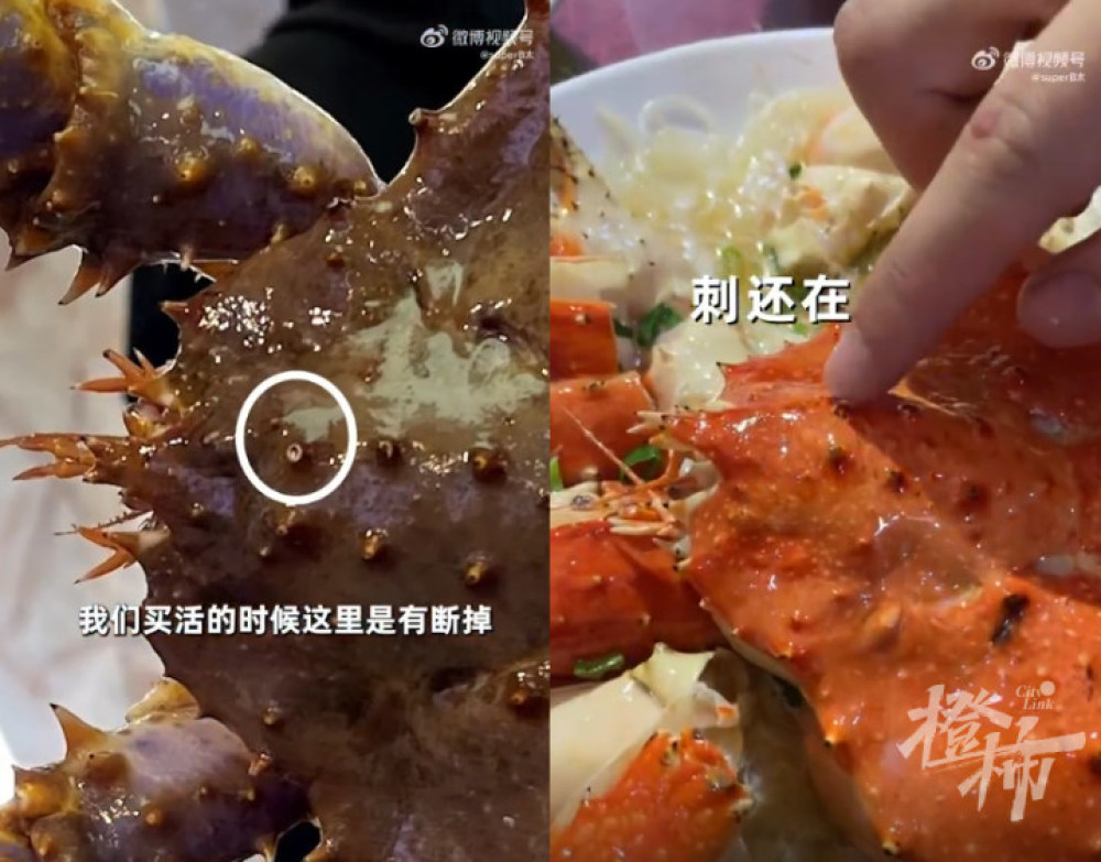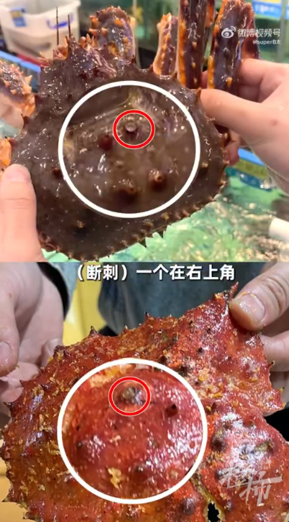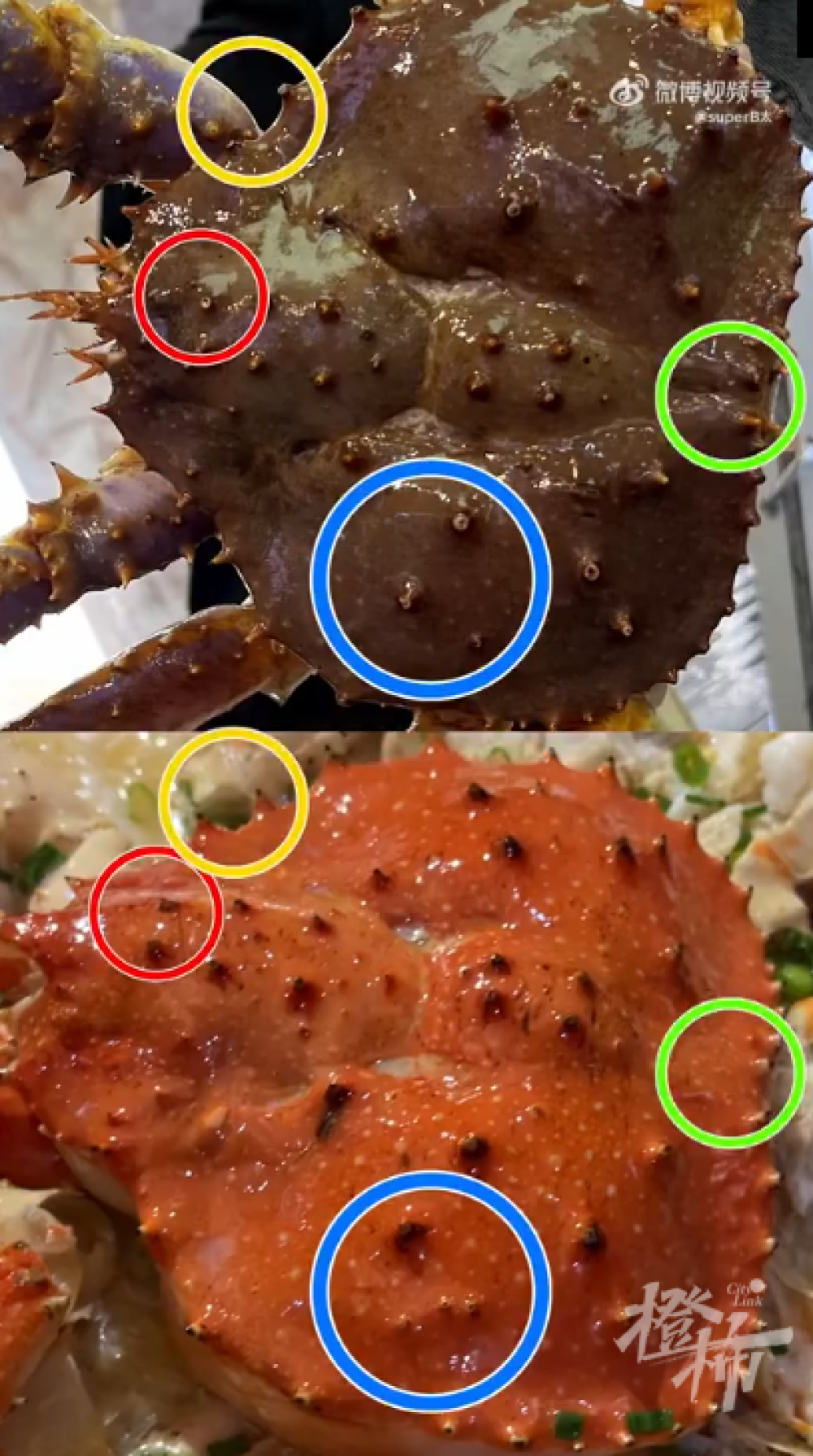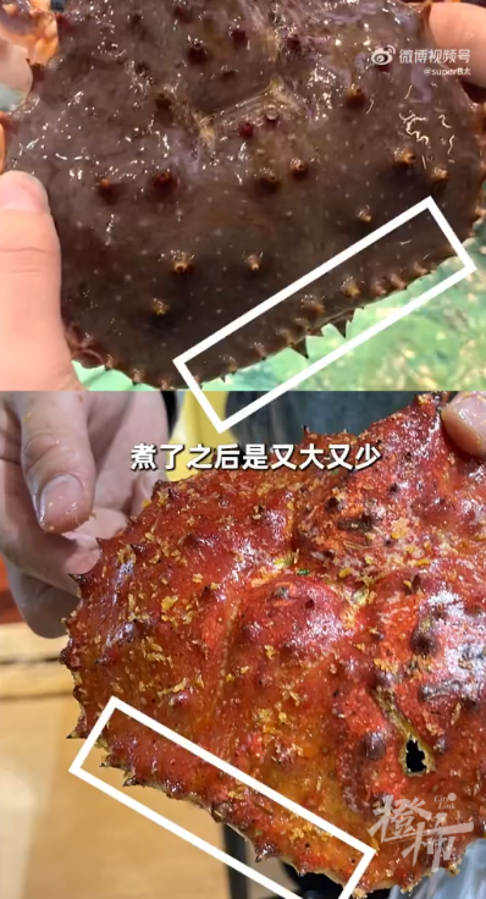 博主挑的帝王蟹和最后送上桌的蟹有多处不同。你觉得是同一只蟹吗?