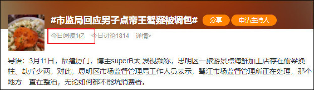 今日, #市监局回应男子点帝王蟹疑被调包#冲上热搜。