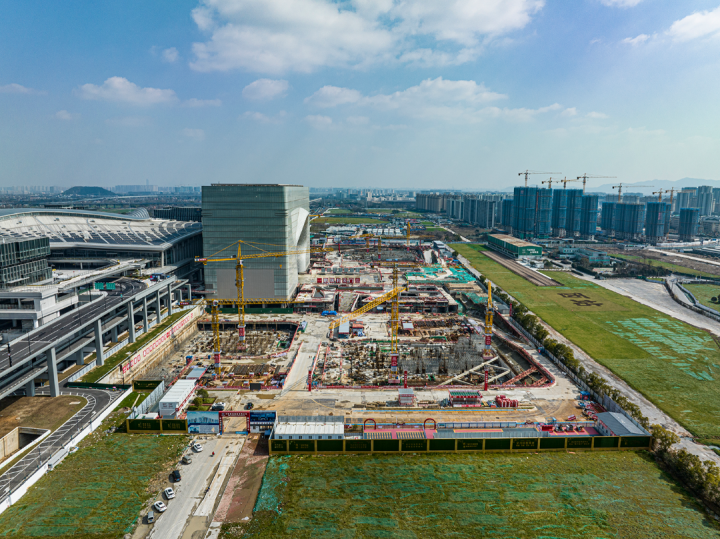总投资超百亿元的云城南区金手指综合体位于杭州西站枢纽站房南侧。目前“云门”已完成外立面施工,超300米的A/B塔楼正在进行B2层施工,超200米的C/D塔楼进行B1层施工。