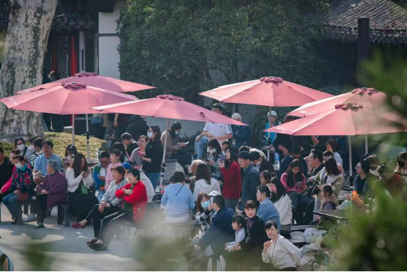 桃红柳绿,春意盎然,吸引了大批游客前来扬州观景、品美食,享受惬意生活。昨天,记者走访扬州餐饮市场了解到,各家茶社包厢难求,零点大厅排队成为普遍现象。此外,不少餐饮店家中晚餐时段也是包厢难求。