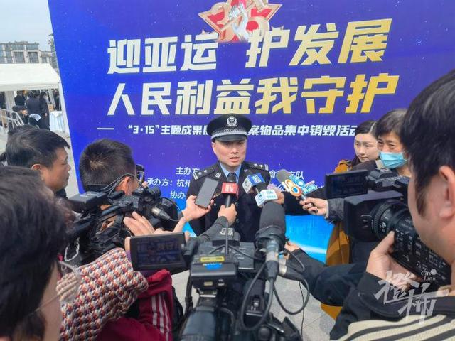 活动现场,通过视频连线形式让大家直击了销毁现场:假烟、假酒、假冒品牌服饰、假冒本土品牌茶叶等假冒伪劣产品,统统被集中销毁。这些都是近年来杭州警方开展“昆仑”“钱潮”“忠诚”等专项行动中查获的,涉案货值近百万元。