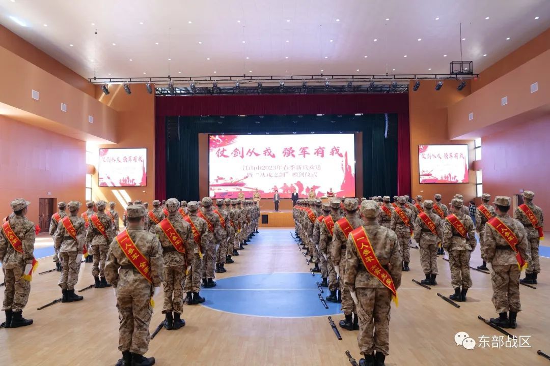 铮铮铁骨正青春,参军报国正当时。3月14日上午,浙江省江山市举行新兵欢送暨“从戎之剑”赠剑仪式,进一步营造“尊崇军人”的浓厚氛围。仪式现场,新兵们身着戎装,肩披绶带,胸戴红花,精神抖擞,英姿飒爽,带着满腔的报国热情和亲人的嘱托期望,怀揣军人梦想依次上台,从军地领导手中接过“从戎之剑”。“宝剑出鞘!听党指挥,能打胜仗,作风优良!”赠剑完毕后,新兵们高喊誓言、庄严亮剑,令人心潮澎湃。
