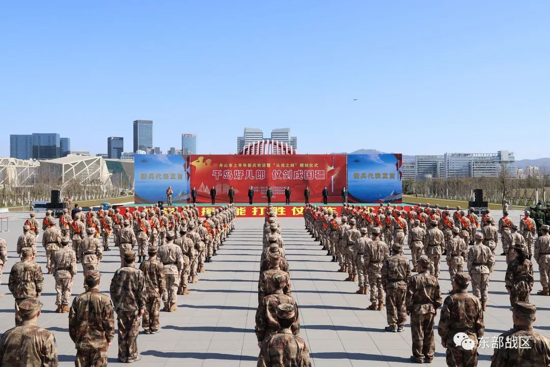 3月14日上午,浙江省舟山市2023年上半年新兵欢送暨“从戎之剑”赠剑仪式在市民中心广场隆重举行。欢送现场,新兵们身着戎装,胸佩红花,肩披绶带,意气风发!伴随着《中国人民解放军军歌》,他们郑重从军地领导手中接过象征军人荣耀的“从戎之剑”,立下铮铮誓言,齐唱《仗剑从戎去》,迈着坚毅的步伐仗剑走过“从戎之门”,表达他们投身火热军营的热情和卫国戍边的决心。