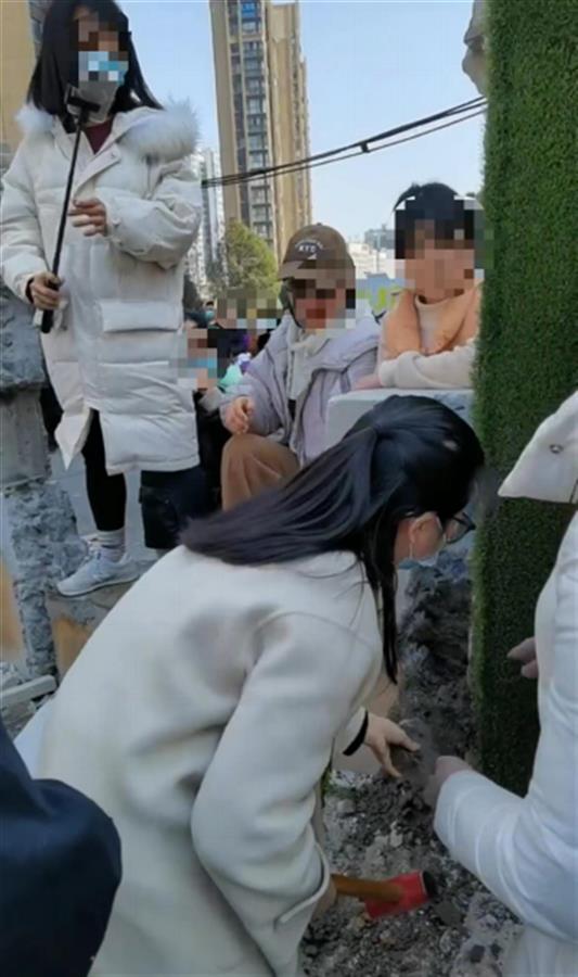 正荣紫阙台业主持锤砸墙现场