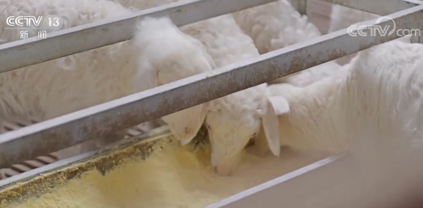 总台记者信任:看这些小羊吃的就感觉和别的羊是不太一样的,靠近能闻到玉米的香味,抓一点看看,感觉很精细。好浓的玉米味,应该是粉碎的玉米,感觉兑上水就能打成玉米糊喝了。