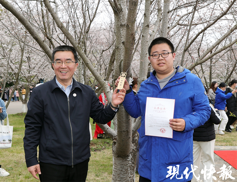 当天下午,中国药科大学学子以班级为单位,认养各自班级的樱花树,签订认养承诺书,将精美标牌悬挂于各自“班树”之上。