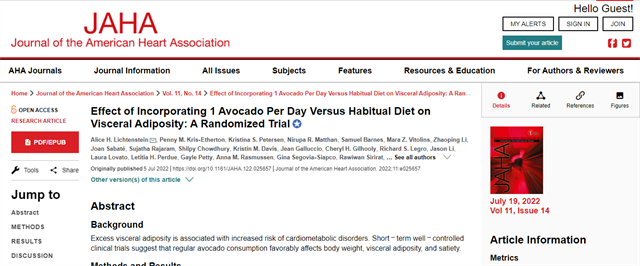 现代快报记者检索发现,2022年7月5日,一项发表于《美国心脏协会杂志》的研究表明,对于超重或肥胖的人来说,连续6个月每天吃1个牛油果对腹部脂肪、肝脏脂肪或腰围没有影响。而且还会使不健康的胆固醇水平略有下降。近期,在《美国营养师学会杂志》发表的一项荟萃分析表明,每天吃半个(99克)牛油果,即可降低高胆固醇血症患者的“坏胆固醇”和总胆固醇水平,且不会长胖。