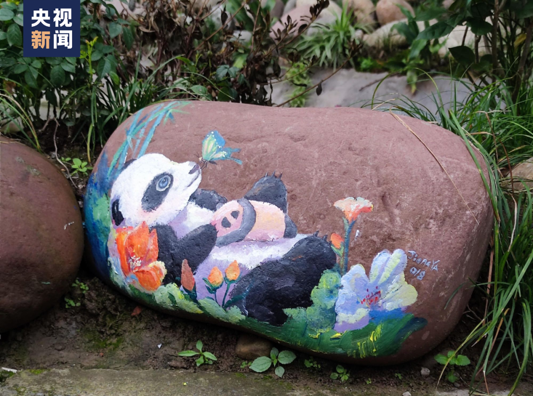 第二天,她就提着工具出门,在公园找到几块大石头,现场画了3只大熊猫,其间,不少网友到现场“监工”,还有小朋友送去零食。