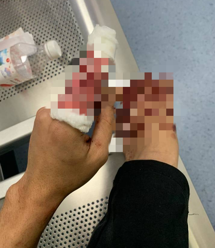 摆摊时遭到城管追赶慌乱中切到手