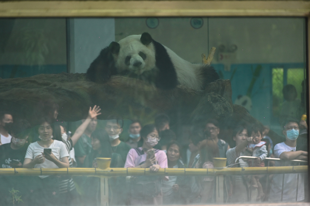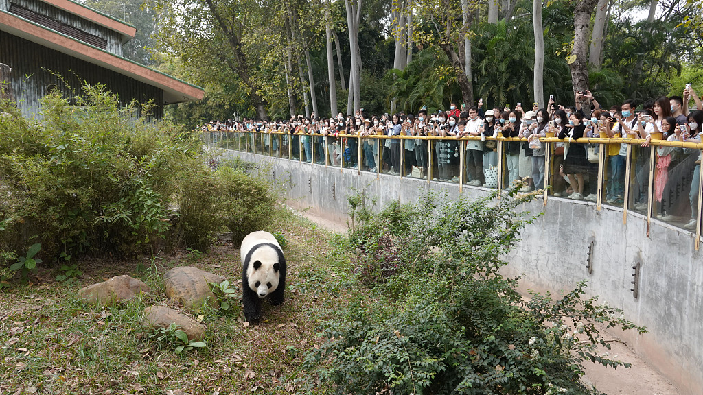 2023年3月18日,广州动物园大熊猫“雅一”吸引游客。中新社记者陈楚红/视觉中国图