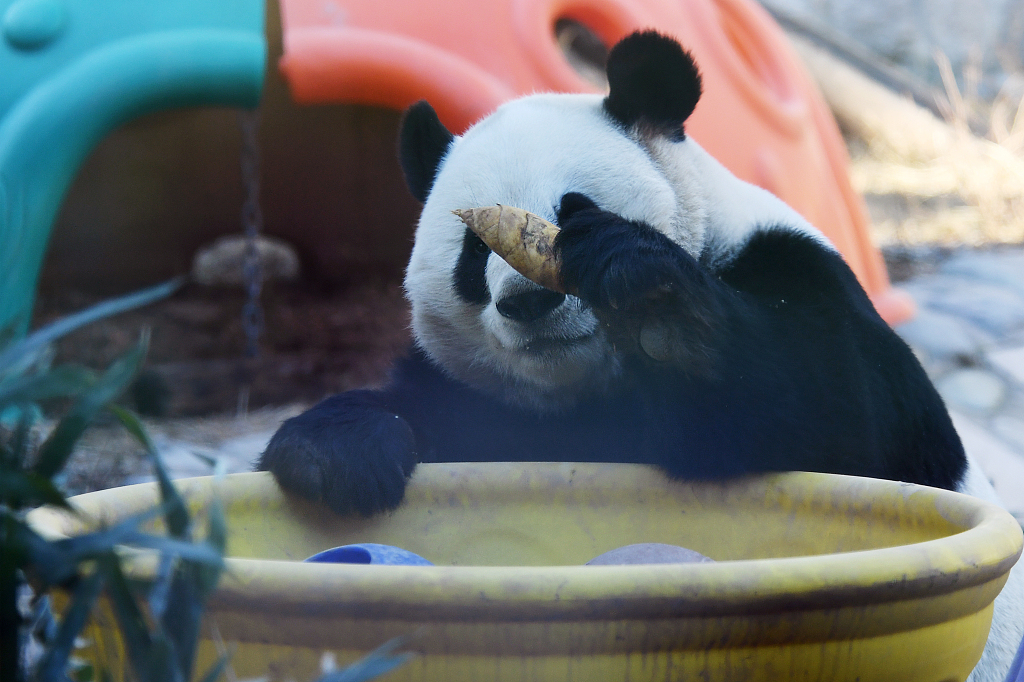 她被粉丝们笑称是一只“剥笋机器”,因为自己行动缓慢且细嚼慢咽,常常刚剥好的竹笋会被其他熊猫同伴截胡。