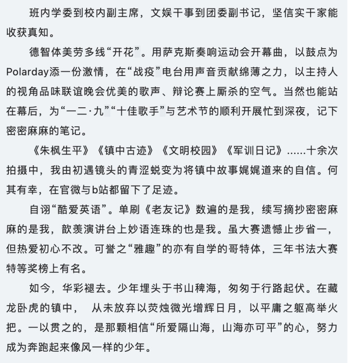 有镇海中学校友说,陈鑫律才华与颜值兼备,在高中时就非常出色,是2021年度的“镇中十佳”。
