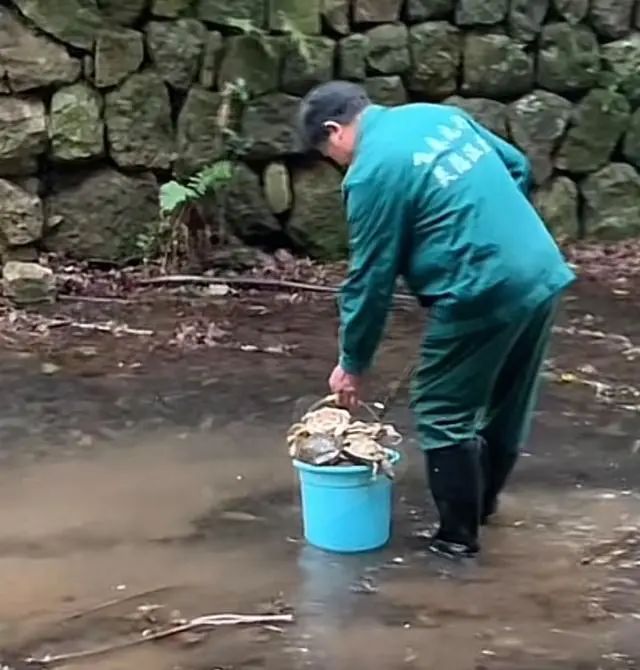 3月23日,有网友在社交平台发布视频,称杭州灵隐寺旁的小溪里,有大量乌龟死亡。视频中显示,一名身着工作服的人员,一只手用钳子钳起死亡的乌龟,另一只手提着一个装满了死乌龟的水桶,并且还在继续沿着河道搜索。