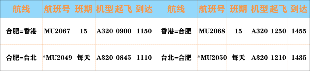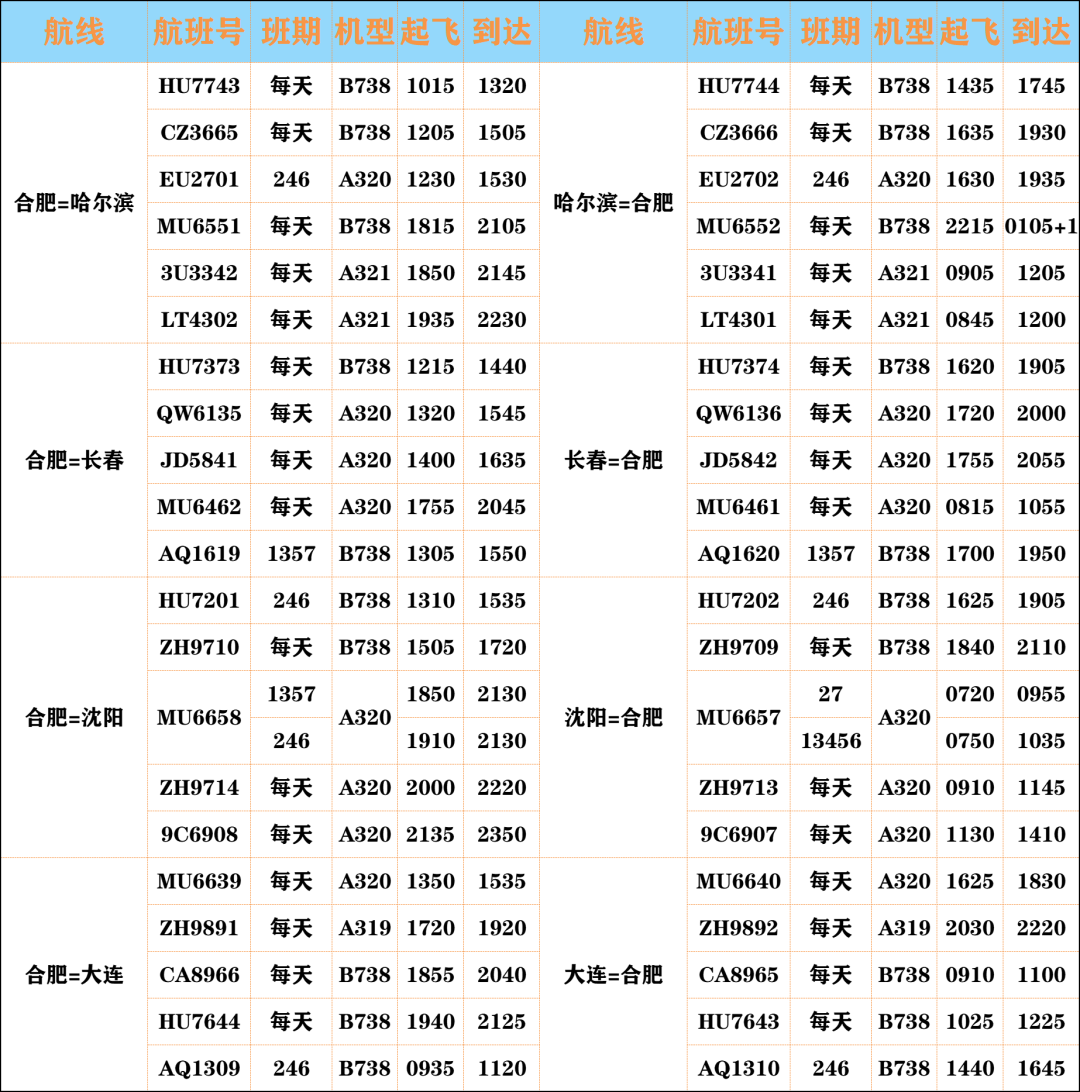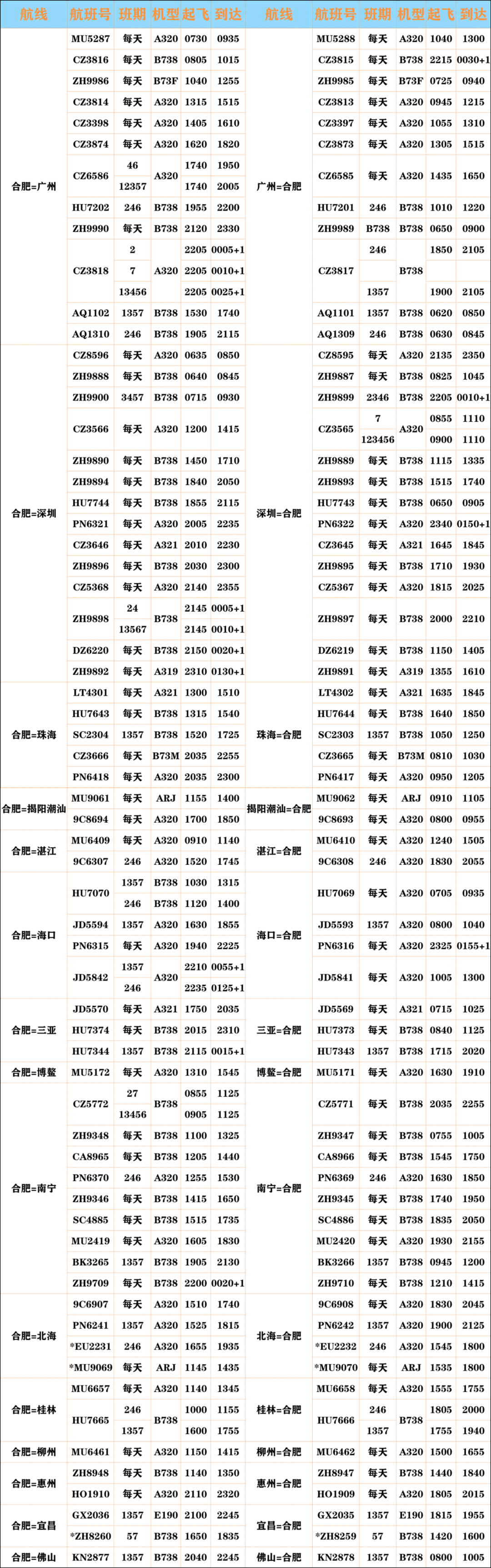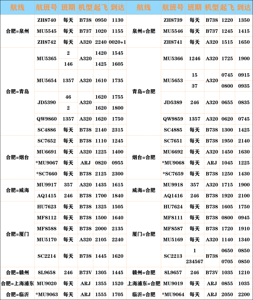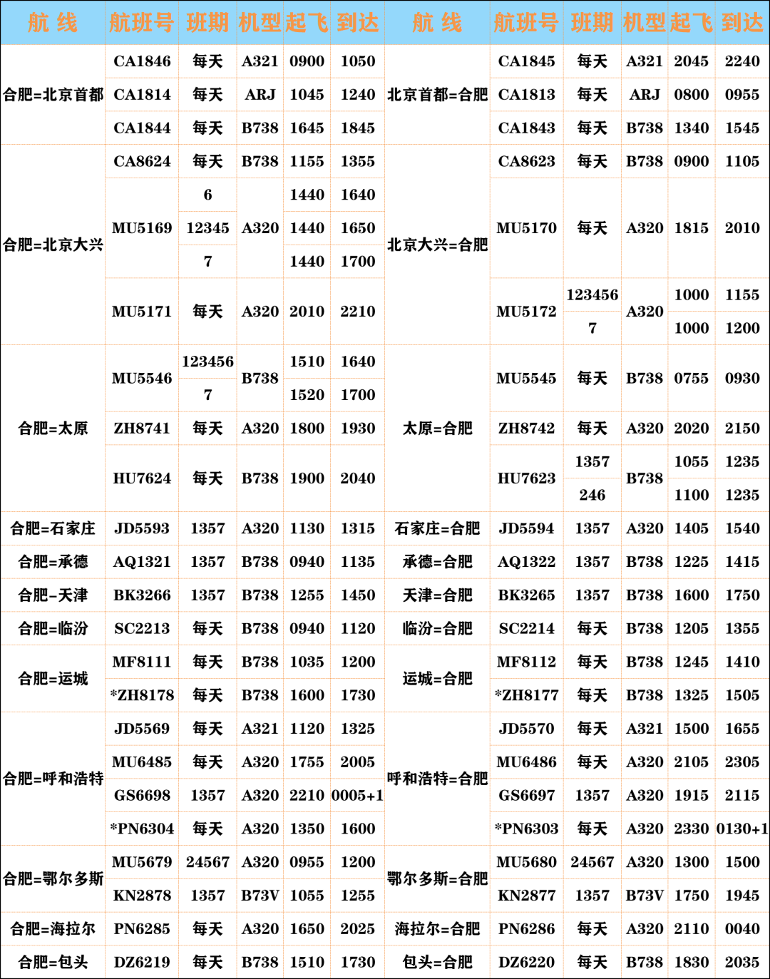 *以上航班时刻表仅供参考,最终航班执行以销售系统为准,加*号航班何时执行另告。