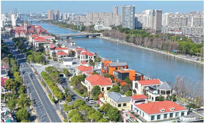 航拍视角看太仓,生态绿廊连绵蜿蜒、清澈河道纵横交错,高楼与道路掩映在大片绿地中。如果追江赶海是一以贯之的“大写意”,现代田园城就是精雕细琢的“工笔画”:公园、绿地与廊道、水系勾连互补,打造“一心两湖三环四园”的生态体系;50多个街头游园被提档改造,一批林荫路、景观路和湿地公园陆续建成。