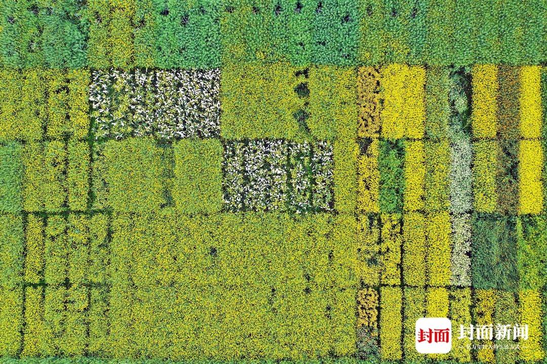 走进农科院羊马基地,道路两旁开满了油菜花,形成一片片花海。再走近观察,这些油菜花不仅有传统的黄色,还有白色、橙色、红色等。一阵微风拂来,油菜花随风摆动,好似五颜六色的波浪。