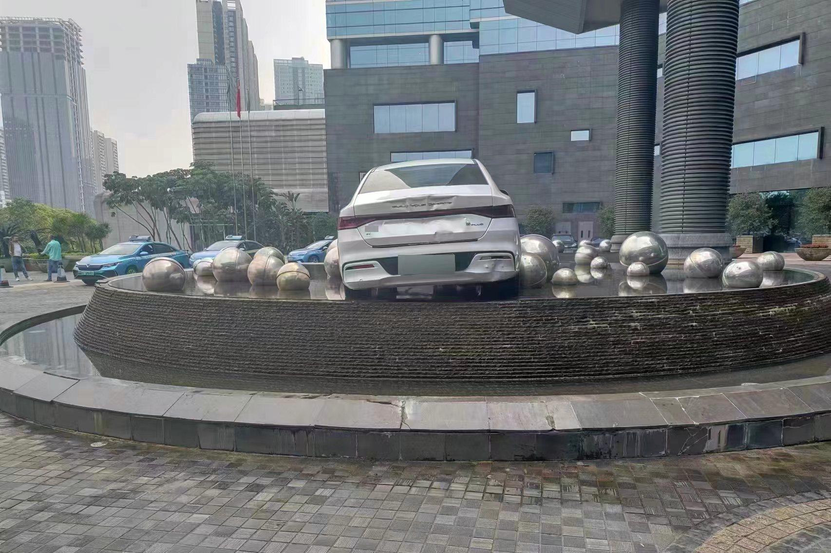 就在慌乱中,罗某把油门当成刹车,车子像脱缰的野马,瞬间往前冲——直接冲上1米多高的水景台!而后,小车被卡在水景台上动弹不得。