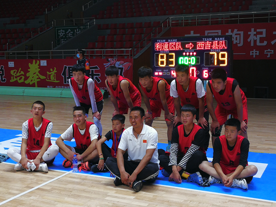 2021年,宁夏回族自治区中宁县体育馆,西吉二中男篮队代表西吉县在全区青少年篮球锦标赛中获得亚军。陈志伟/摄
