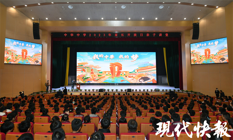 在现场,中华中学党委书记李兵,代表学校欢迎家长参加中华中学2023年“家长开放日”。这是雨花校区第一次“家长开放日”,从2021年正式招生到去年8月底雨花校区正式启用,再到敞开怀抱迎接所有家长,雨花校区迅速地成长、壮大离不开中华全体家长、师生的共同努力。伴随着城市发展的进程,它已经成为南京教育又一张亮眼的名片。以“兴隆-雨花”为范本的一体化管理成为了榜样。兴隆和雨花两校区真正实现了统一规章制度、考核、评价表彰,统一课程、进度、考试、教研组、备课组管理,实现重点工作、重大活动统一。据悉,这一年,兴隆校区和雨花校区高一、高二两个年级一起参加了南京市统测,雨花校区高一、高二两个年级的同学都交出了亮眼的成绩。此外,在全国中学生英语能力测评、“地球小博士”全国地理科普知识大赛、“外研社杯”全国中学生外语素养大赛、江苏省中学生阅读与写作大赛等国家级、省级赛事中,雨花校区的同学们表现抢眼,硕果累累。