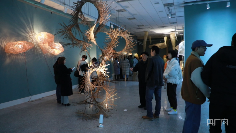美术与设计艺术学院学生胡小荣说:“我编织的是灯具,运用了六角针的编织手法。编织过程中,我经常在造型方面遇到问题,但老师都会手把手地教我,帮忙调整编织角度和图案结构。”