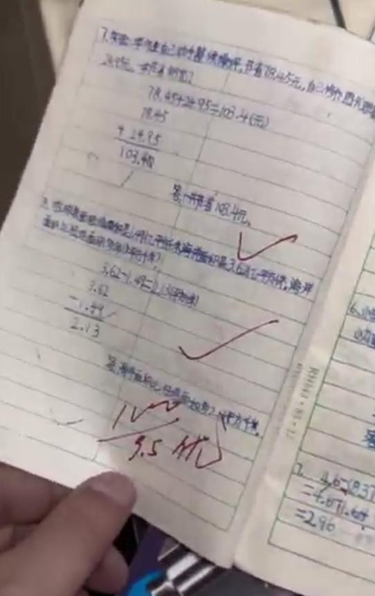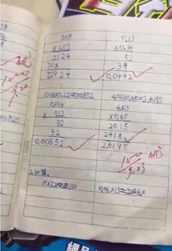 彭先生的这本作业是数学,翻开作业本字迹十分工整。“我觉得看上去还是挺整齐的,没想到自己小时候可以写这么整齐,就想着给孩子看一下,让她也跟着学学,也希望她的作业可以写整齐一点。”