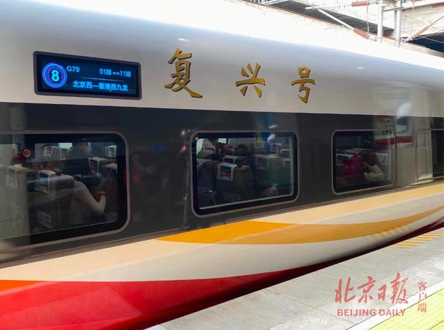 北京西站客运车间副主任王秋菊介绍, G79次北京西10时始发,香港西九龙18时31分终到,经停石家庄、郑州东、武汉、长沙南、广州南、深圳北站,全程运行时间较2018年开行时8小时56分缩短至8小时31分,进一步拉近了两地的时空距离。