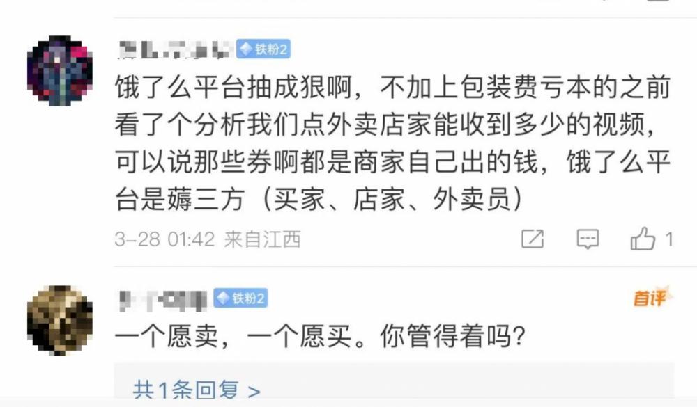 “外卖是平台收的,我们不会收的,你找平台啊,我们调整不了。”