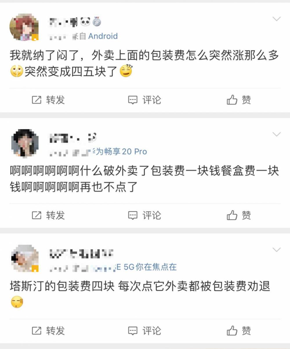 “外卖不是很贵,但是要这么贵的包装费,那种店家就不会点了。”