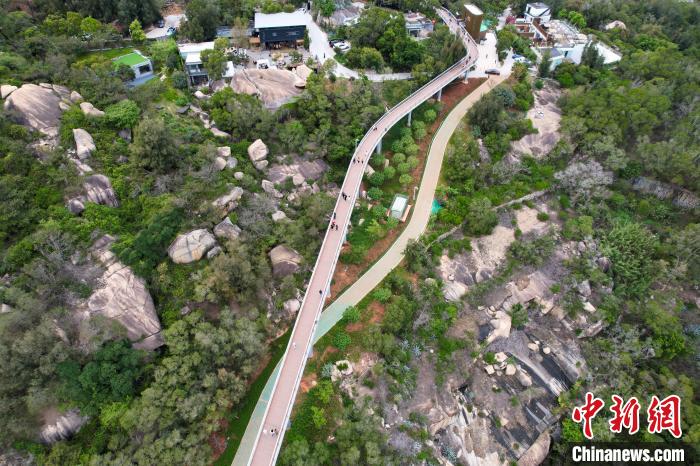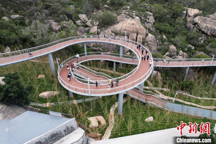 周末,许多市民到山海健康步道散步观景。 王东明摄