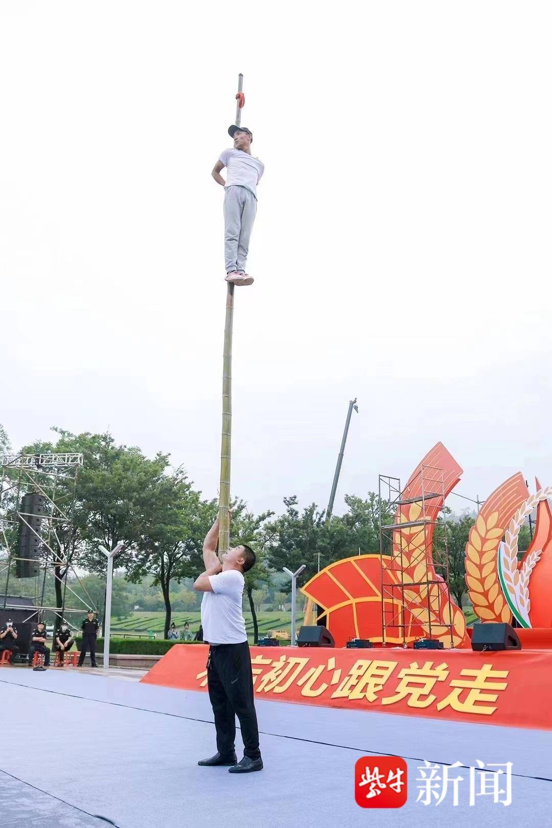 李猛告诉记者:“当时学习杂技,一下子选了三个项目,分别为徒手爬竹竿、独轮车表演和水流星,前两个项目表演得多。”李猛不怕苦不怕累,扎扎实实学到了手艺。学成后,市场行情却不好。后来,为了谋生,他开过面馆,在苏州电子厂打过工……出于对杂技表演的热爱,2015年,李猛选择再次回到了这个行业。