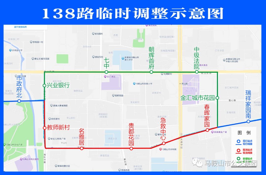 据马鞍山市公交集团消息,受宁马城际铁路(马鞍山段)工程建设影响,江东大道与花园路交叉口东西方向将进行道路全封闭施工,期间影响公交130路、138路正常运行,自4月5日起,两条公交线路作临时调整。