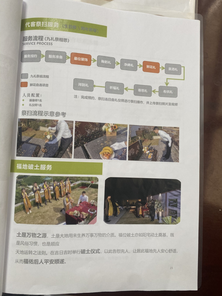 在韩超递出的一摞宣传册子上,详细列明了从接运到安葬多个环节的服务内容,名曰“全生命周期服务体系”。
