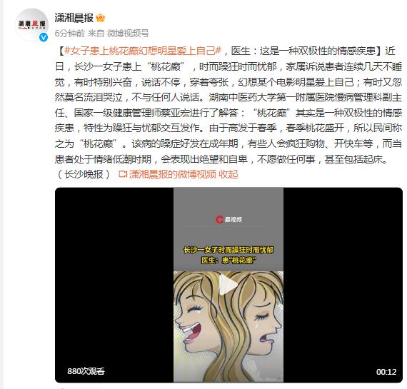 女子患上“桃花癫”幻想明星爱上自己,医生:这是一种双极性的情感疾患