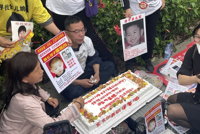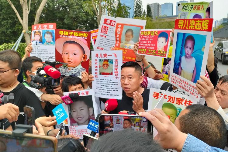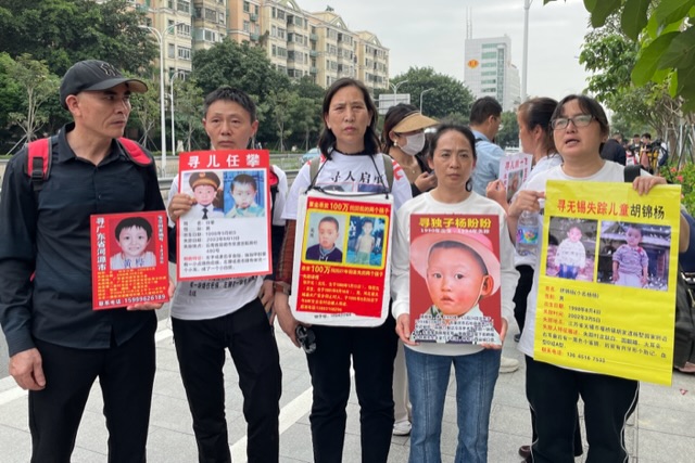 从上午到中午,再到晚上,法院门口,一直站满了从全国各地赶来的寻亲家长们,他们把这次庭审当成一次难得的展现自己孩子信息的机会。