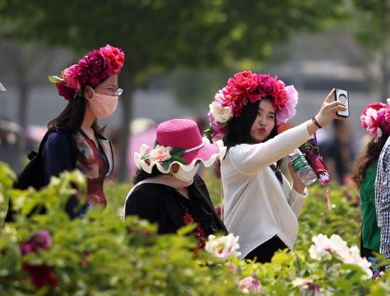 (菏泽市曹州牡丹园游客。图片来源:《花开时节》菏泽市摄影家协会刘心中)