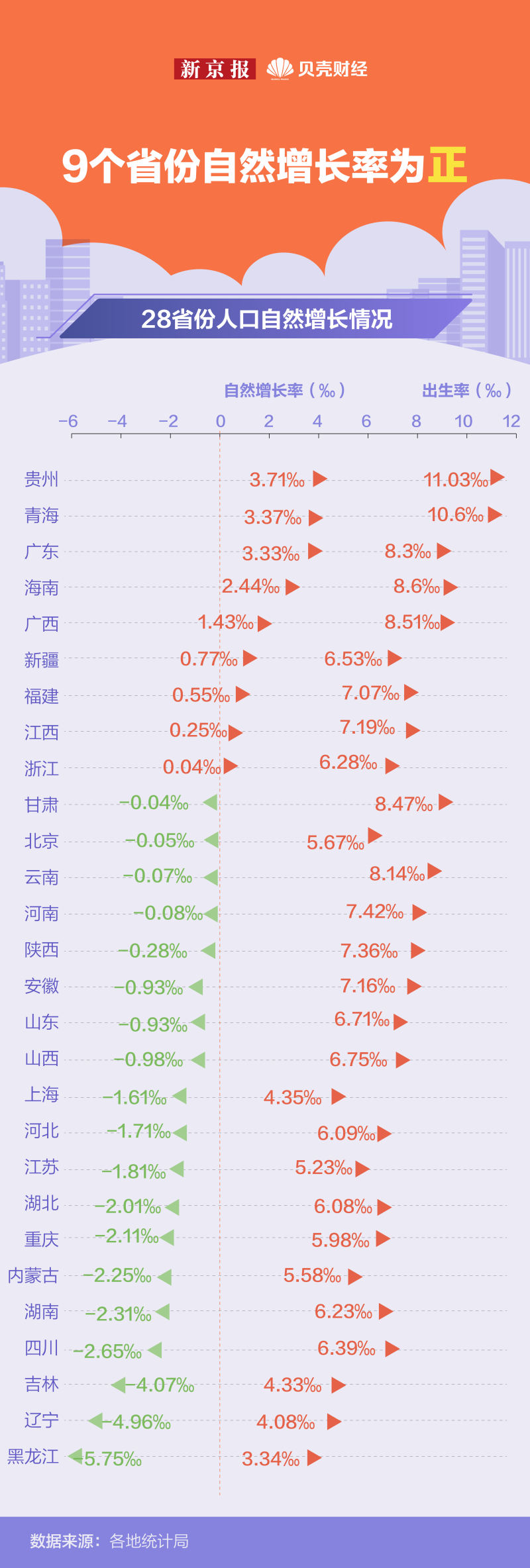 不只是湖北,出生率持续下降成为每个省份人口增长的一道“坎”。目前已有28省份公布自然增长率,其中9省份自然增长率为正。在全国人口减少压力下,两个人口大省也顶不住了。自1985年以来,山东人口首次减少,相比于2021年减少7.2万人,其中自然增长率为-0.93‰。河南人口自然增长率62年以来首次负增长,从2021年的0.64‰降至为-0.08‰。