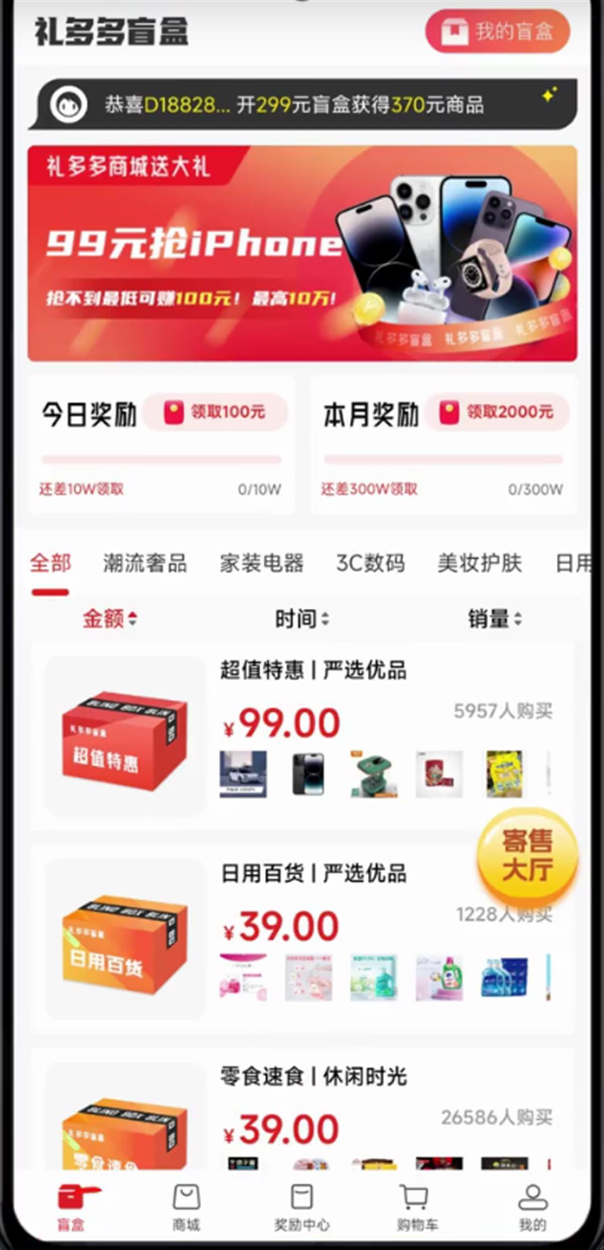 另一名受骗人高先生表示,他在网上看到介绍,称“礼多多”所属公司先后获得三轮融资,分别为2000万美金、5700万美金和8000万美金,他认为资本雄厚的“礼多多”为了进入市场,愿意在起步阶段投入巨额成本。于是,他下载了“礼多多”APP,“我在这上面消费了,平台还会给我红包补贴,转卖盲盒也有补贴。”
