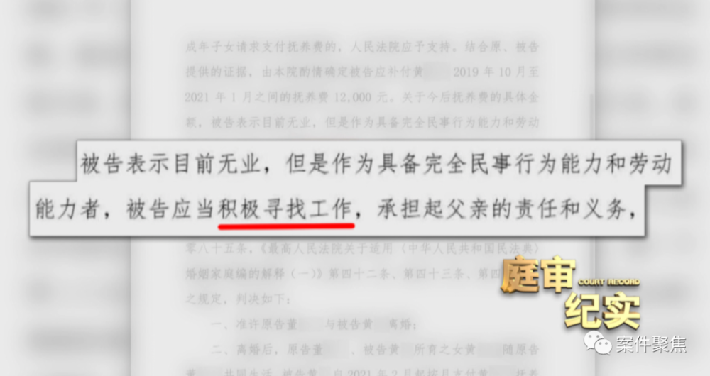 其实,早在两人离婚的判决书上,法官就要求黄先生应当积极工作、承担起为人父的责任。