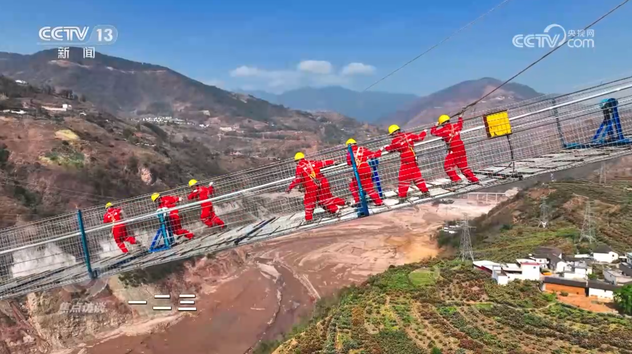 200米高空,主跨550米的黑水河大桥正在进行主缆索股的牵引。铁丝网铺设的临时通道在风中摇摆不定,它还有一个更形象的名字——“猫道”。在他们脚下,就是金沙江下游最大最活跃的断裂带——则木河断裂带。黑水河大桥建设在多条断裂带上,是我国首座跨越活动断裂带的悬索桥。